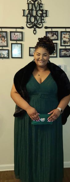 Very pretty and comfortable . Green color is a little less shimmery and more darker than the pic. Will be exchanging. Beautiful dress though.